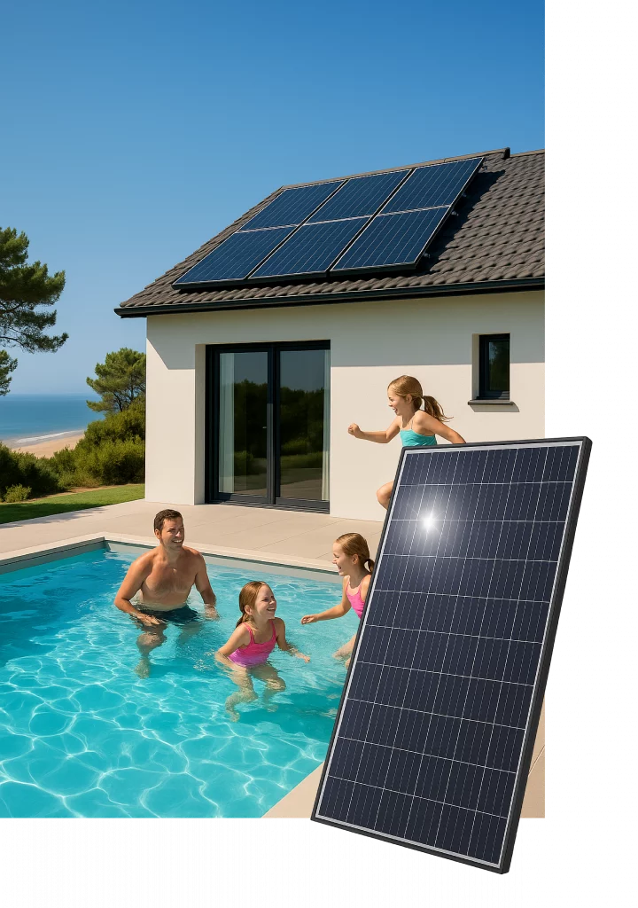 Alimentez la filtration de votre piscine grâce à l’énergie du soleil et réduisez votre facture d’électricité. Les panneaux photovoltaïques transforment la lumière solaire en électricité pour faire fonctionner pompe de filtration, coffret électrique et régulation, sans dépendre du réseau.